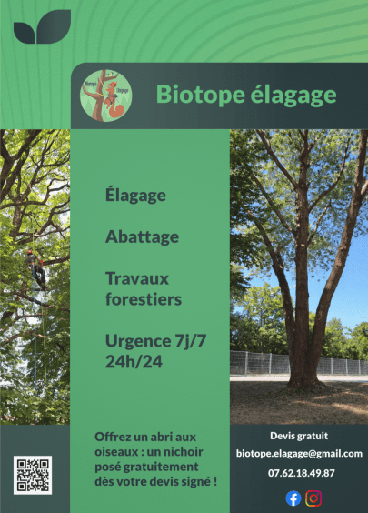 Oui, Biotope Élagage intervient aussi bien pour les particuliers que pour les entreprises, collectivités, gestionnaires d’espaces verts et besoins de sous-traitance.